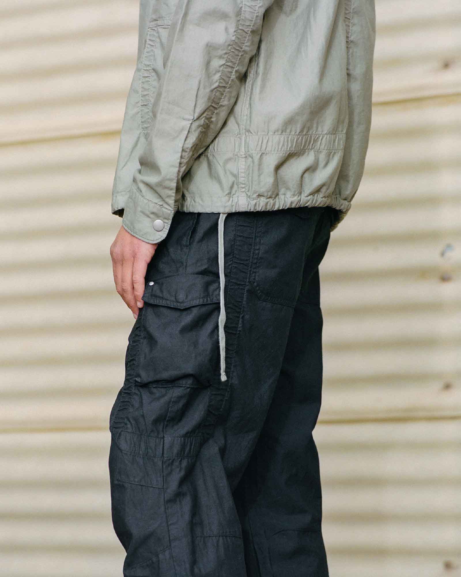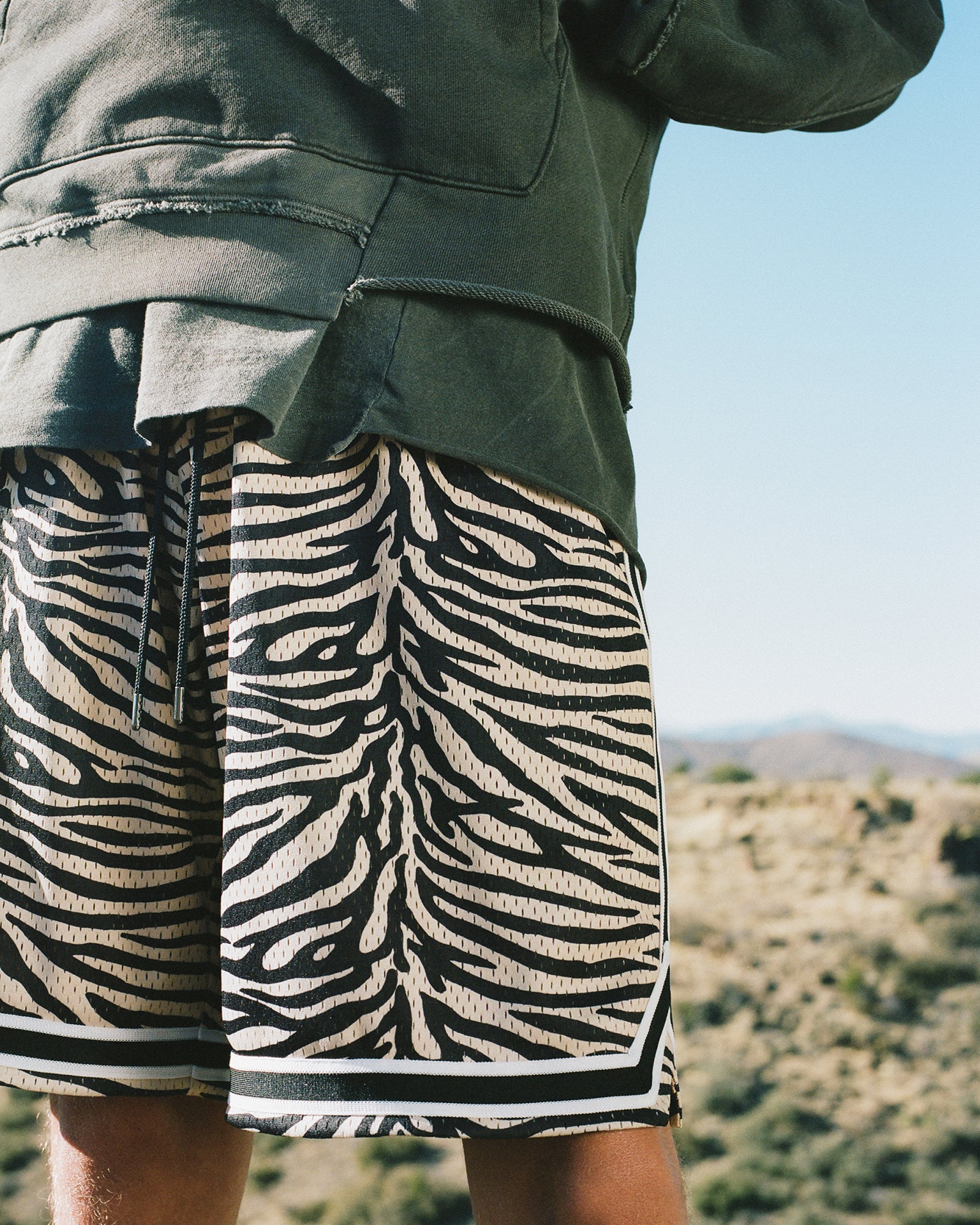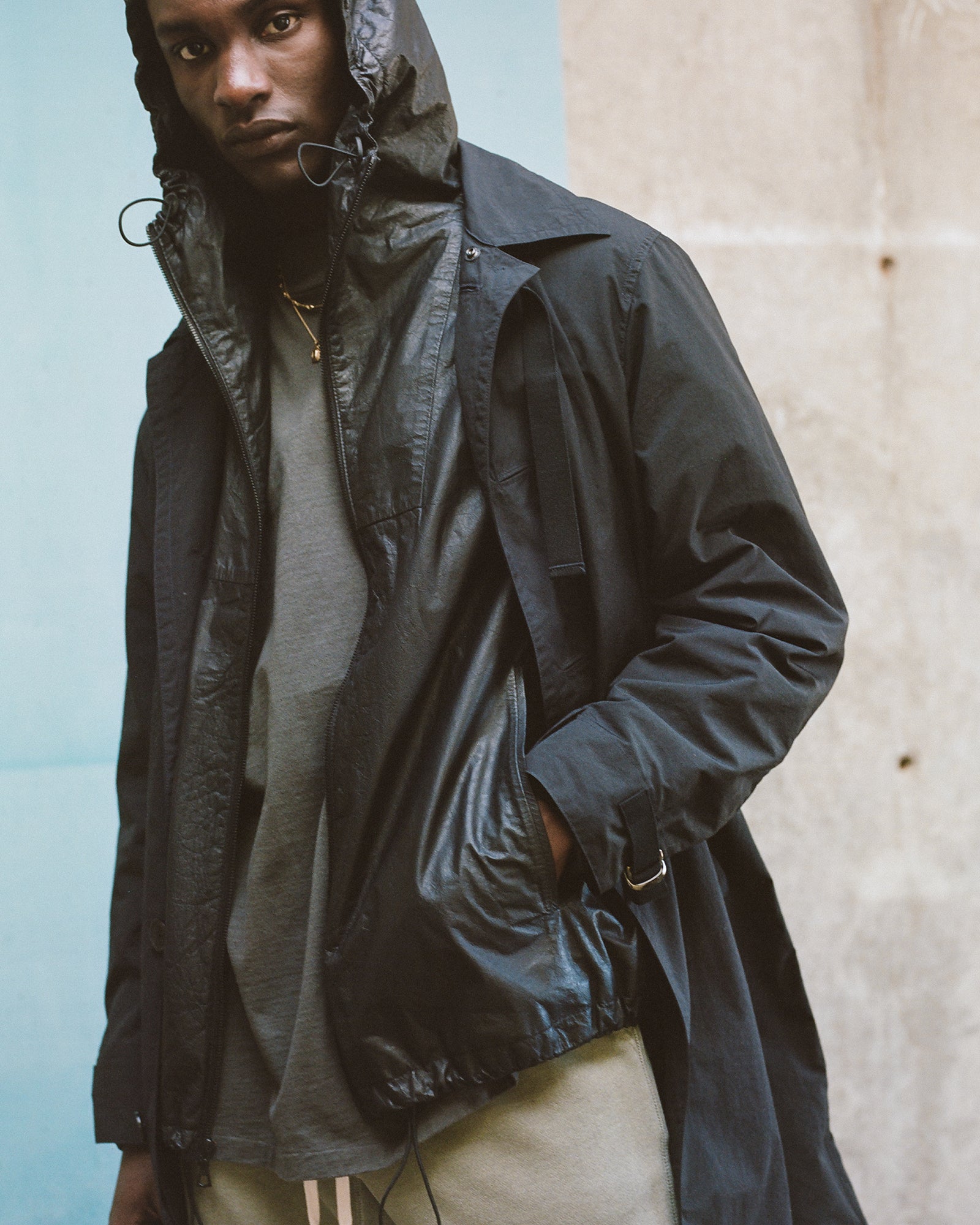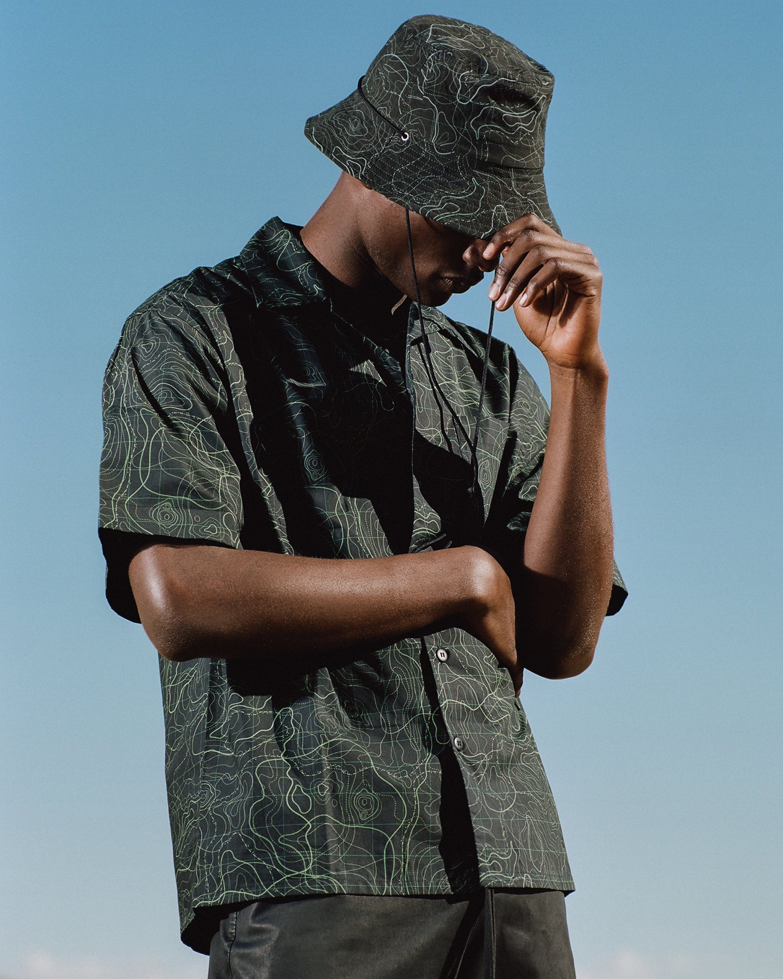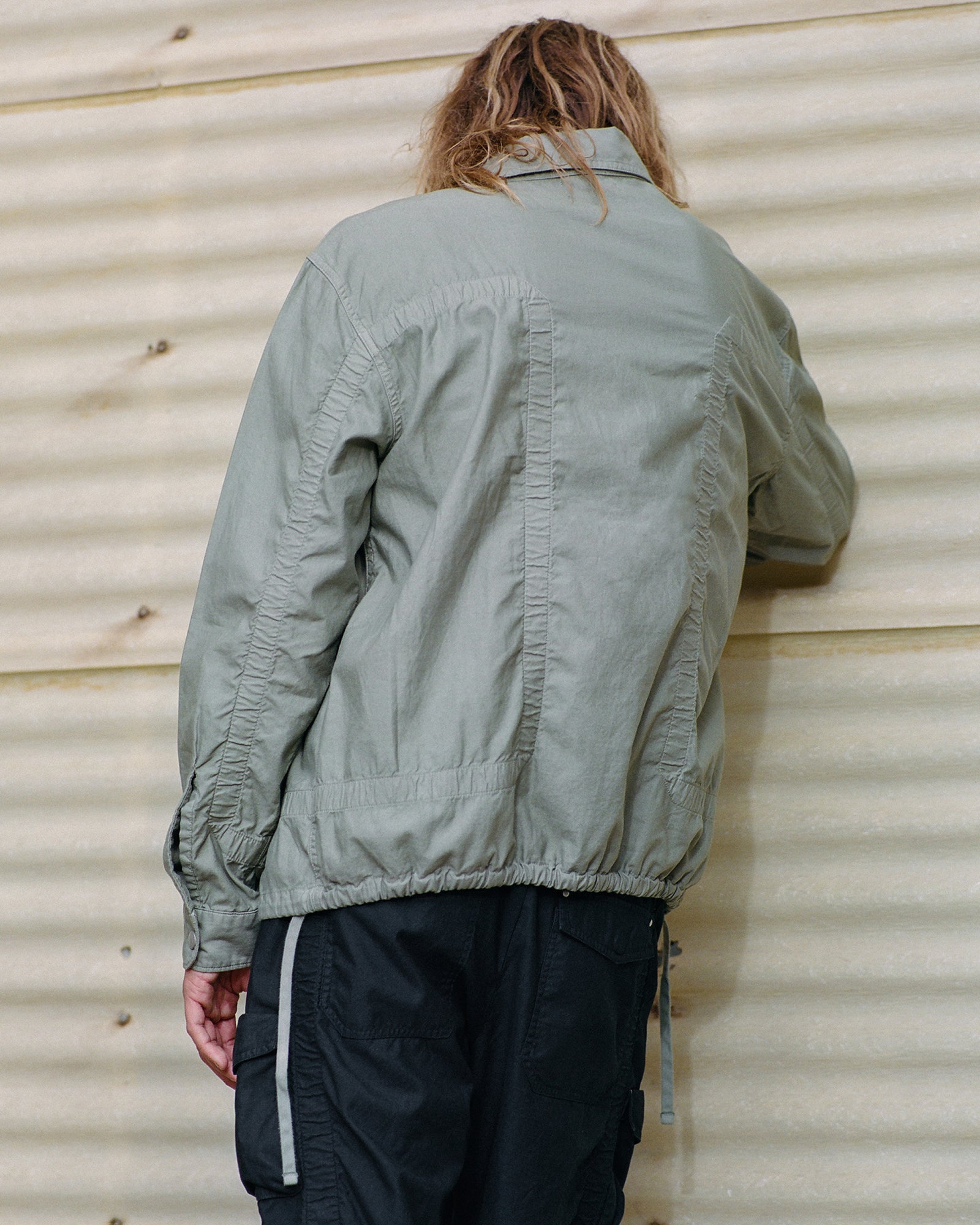 The Lookbook was shot on location at Arcosanti, an experimental town in Arizona thats concept was proposed by the Italian-American architect Paolo Soleri. Muted, earthen tones, seemingly washed by the sun, are featured throughout the collection. A tiger-camo trench, deliberately finished with a laborious bleaching process, is paired with hand painted denim, inspired by Jackson Pollock. Looks are elevated with new leather developments, and finished with the debut of a complete in-line footwear program.
