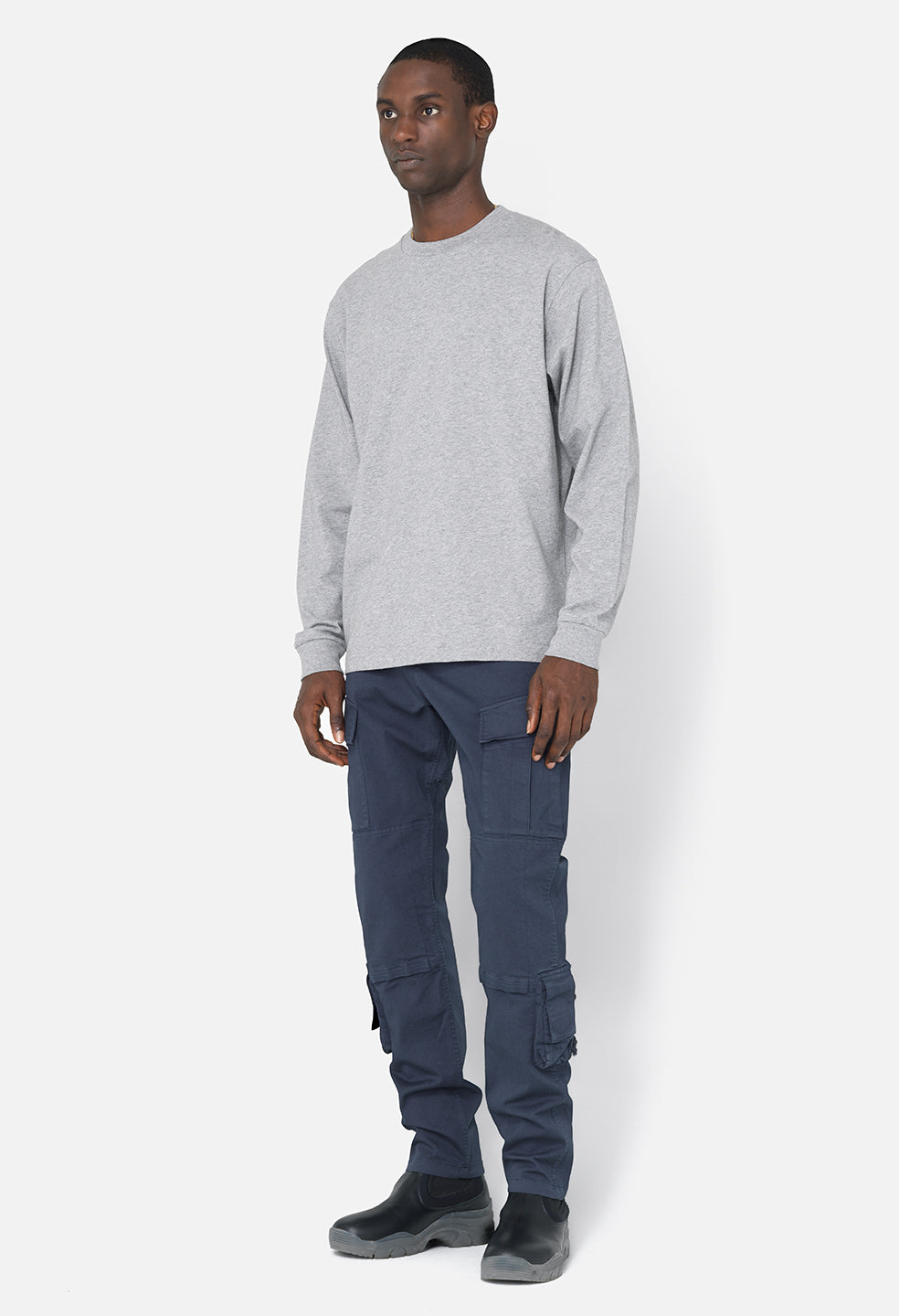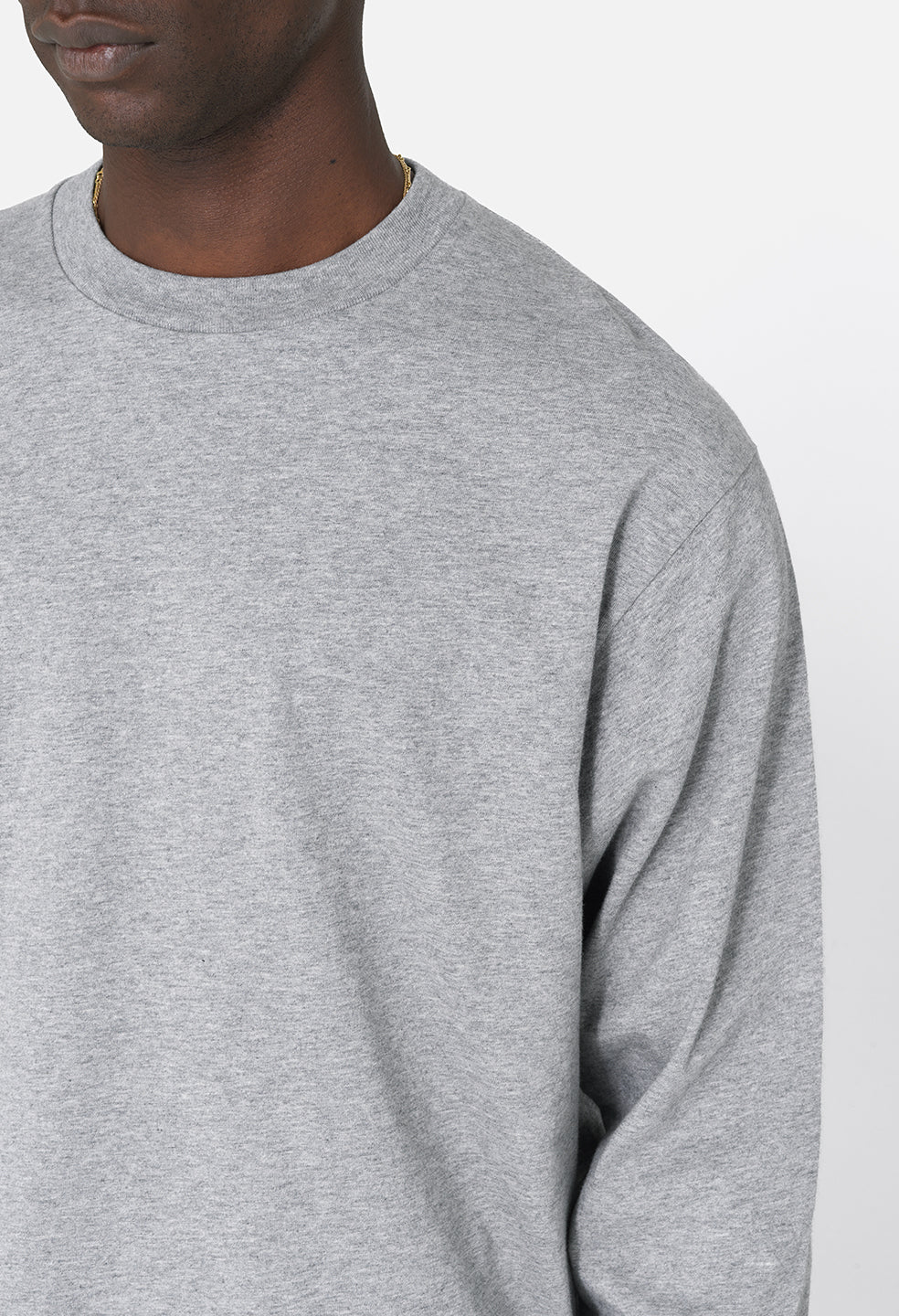 Oversized long sleeve tee with a relaxed neck and slightly longer than average length. This tee is designed with recycled cotton and features a vintage-inspired blind stitch detail at the sleeves and hem. Ribbed neck and cuffs.